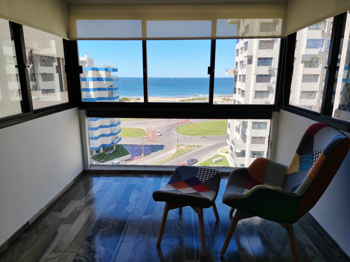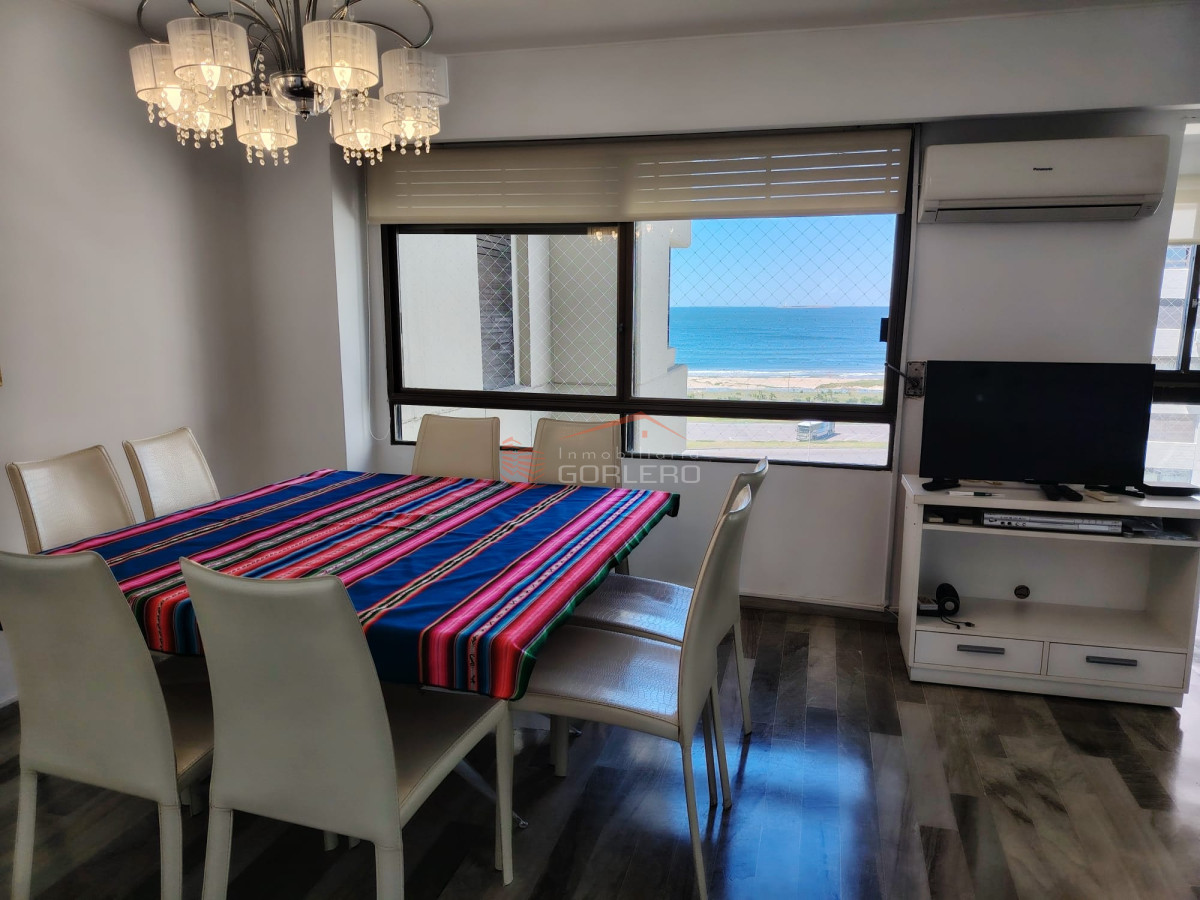 BRAVA, Edificio frente al mar y a pasos de Gorlero, agradable vista mansa y brava. Hermosa unidad de 3 dormitorios, uno en suite, muebles, terraza, garage, cuenta con servicio de mucama y gimnasio. Consulte y vealo! -