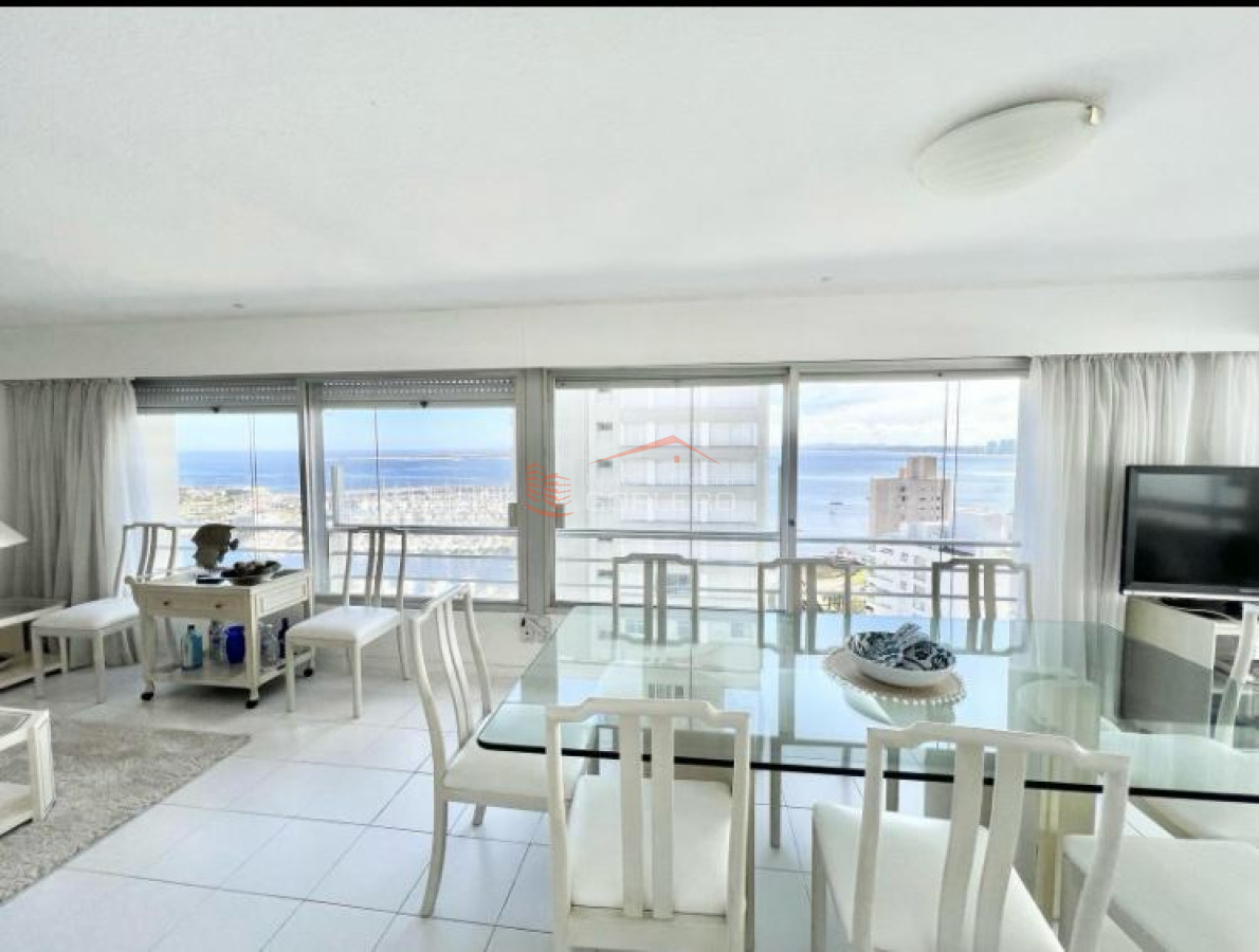 Punta del Este, espectacular planta, Península frente al mar!! Amplia galería al marpara disfrutar de las mejores vistas, cuenta con 3 dormitorios, 2 baños, 1 en suite, más dormitorio de servicio con baño, todos con vista al mar, living comedor amplio con vista despejada, piscina, barbacoa, recepción, mucama. Capacidad para 7 personas. Consulte más información! -