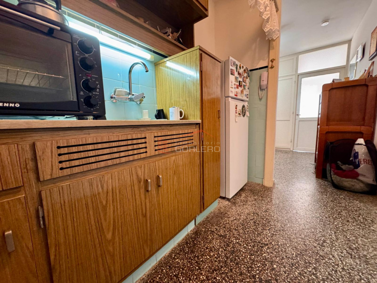 Hall de ingreso, cocina pasante, baño completo, ambiente amplio dividido por un placard.