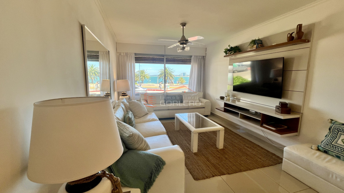 Apartamento en primera linea de playa Mansa cuenta con 3 dormitorios, 3 baños, 2 en suite , living comedor, cocina garaje en sub-suelo , baulera .