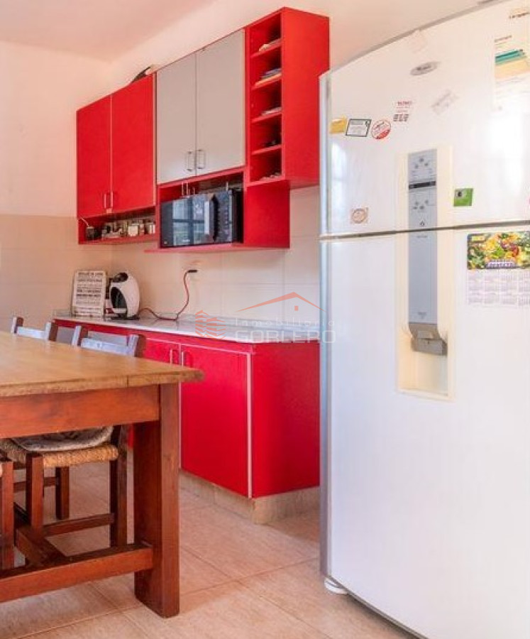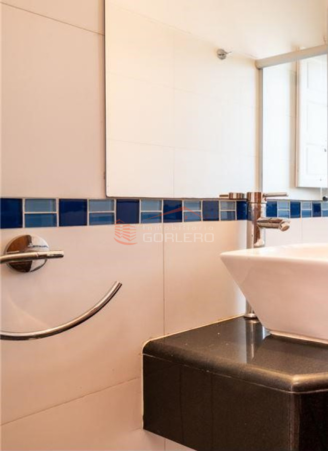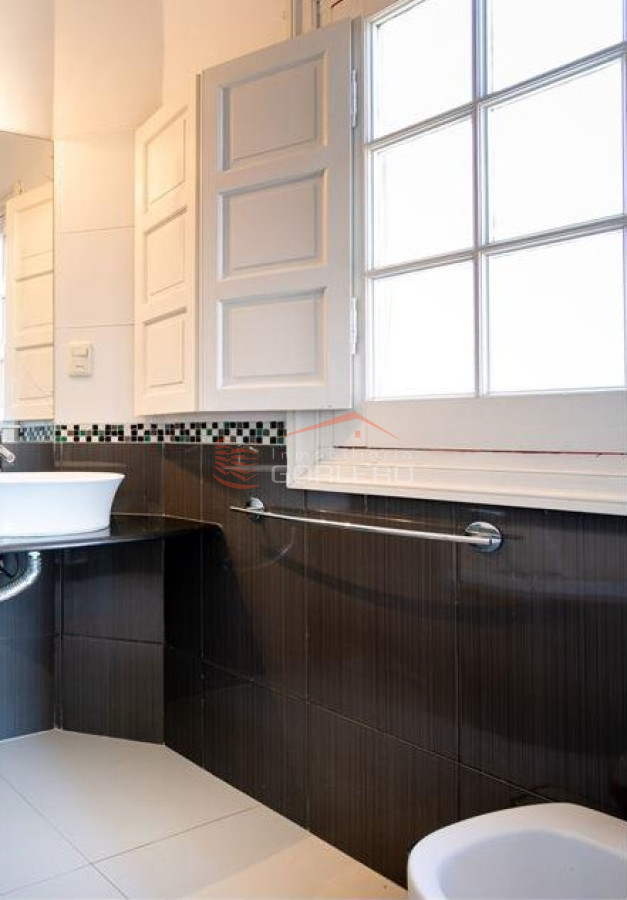 Hacia el este se ubica un enorme living comedor de 30 m2 con gran calefactor de hierro a leña, hacia el oeste otra sala que sirve de estar o biblioteca con 18 m2. Saliendo por un amplio y luminoso pasillo hacia el norte encontramos un baño toilette de cómodas dimensiones, reciclado a nuevo. Gran cocina con doble mesada y comedor diario.
