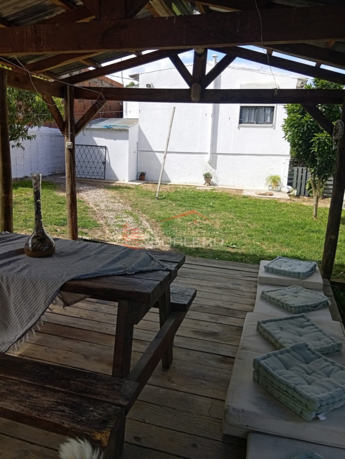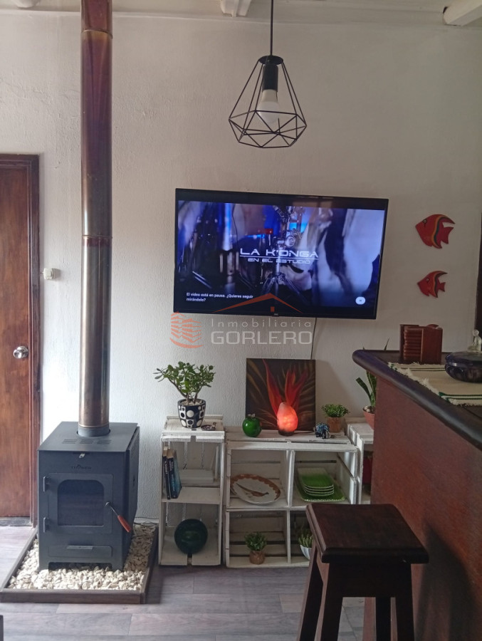 Casa con patio cerrado y parrillero techado, 2 dormitorios y un baño, cocina integrada, living con estufa de alto rendimiento.