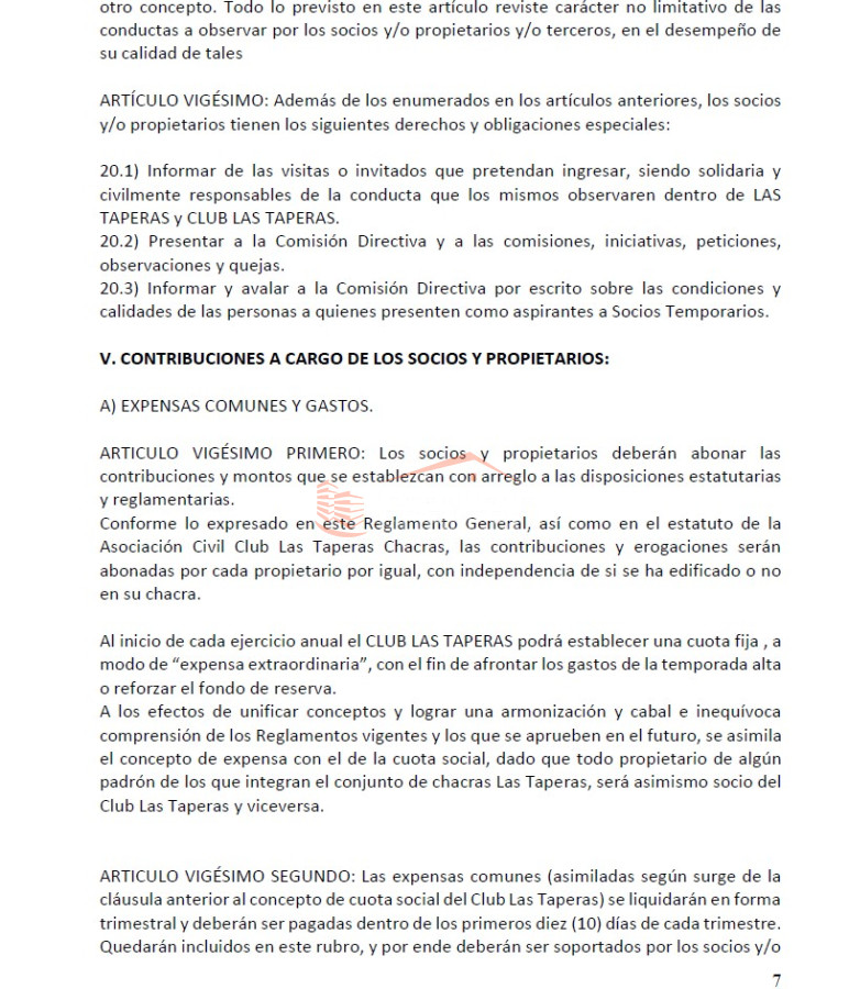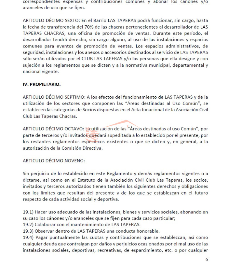 Las Taperas es un barrio cerrado con servicios de agua y red eléctrica sobre un fraccionamiento rural, compuesto por chacras de 5 hectáreas. Planificado en dos etapas, la primera consta de 25 chacras, en donde el Espacio Común es para uso y disfrute de sus propietarios.
